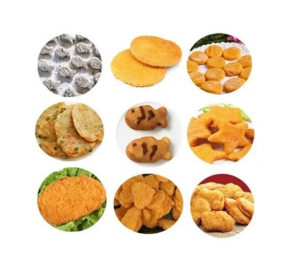 Au fur et à mesure que le produit passe par la bande transporteuse,Il est recouvert uniformément d'une couche de prépoussière ou de poudre mélangée par la bande transporteuse recouverte de poudre et la poudre est aspergée par le haut pour répondre aux exigences du processus suivant.Il peut être relié à la machine de battage et à la machine de painage pour former différentes lignes de production.Cela permet d'effectuer des procédés tels que poudre-batter-powder-batter-powder et poudre-batter-powder.
