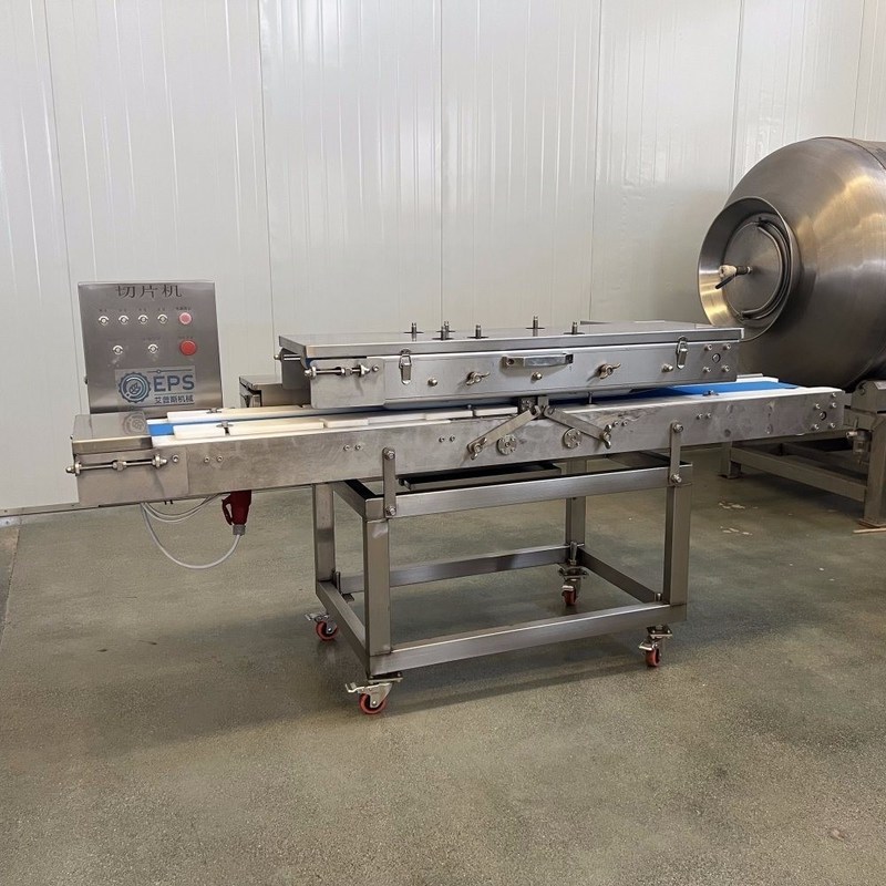 Production de masse: Dans les usines de transformation des aliments, des trancheuses à viande de qualité industrielle sont utilisées pour trancher de grandes quantités de viande pour l'emballage et la distribution.Ces machines sont cruciales dans la production de produits pré-coupés comme le bacon.Le jambon et les friandises.