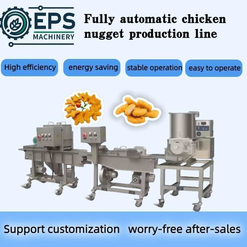 Machine à battre:La machine de battage de cascade recouvre uniformément de pâte le poulet, le bœuf, le porc, le poisson, les crevettes et d'autres produits de la mer à travers un rideau de pâte et un bain de pâte en bas.Il convient aux procédés préalables à la pâte et au revêtement de farine.