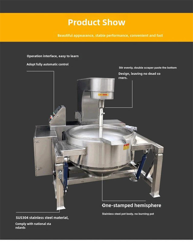 Le mélangeur de confiture en acier inoxydable personnalisé est un mélangeur de cuisson de taille moyenne et il existe des tailles régulières disponibles pour votre choix.Les deux vitesses de mélange remplacent les mains des ouvriers et rendent les processus de cuisson plus efficacesLe bras de mélange peut être soulevé verticalement et le bol peut être incliné à 90° électriquement, de sorte que les aliments dans le bol peuvent sortir très facilement.Les grattoirs peuvent toucher le bol, éviter les brûlures et rendre la nourriture agréable et savoureuse..