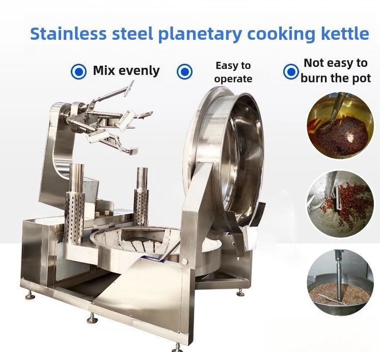La bouilloire de mélangeur de cuisson planétaire dispose d'un système de remuage planétaire spécialement conçu qui assure un chauffage uniforme des ingrédients, empêchant l'adhérence et la brûlure.